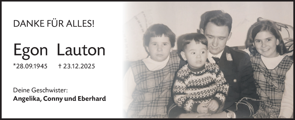 Hier finden Sie alle Traueranzeigen aus der Zeitung, die bisher für Egon Lauton erschienen sind. Weitere Traueranzeigen, die in der Zeitung erscheinen, werden hier ebenfalls aufgelistet