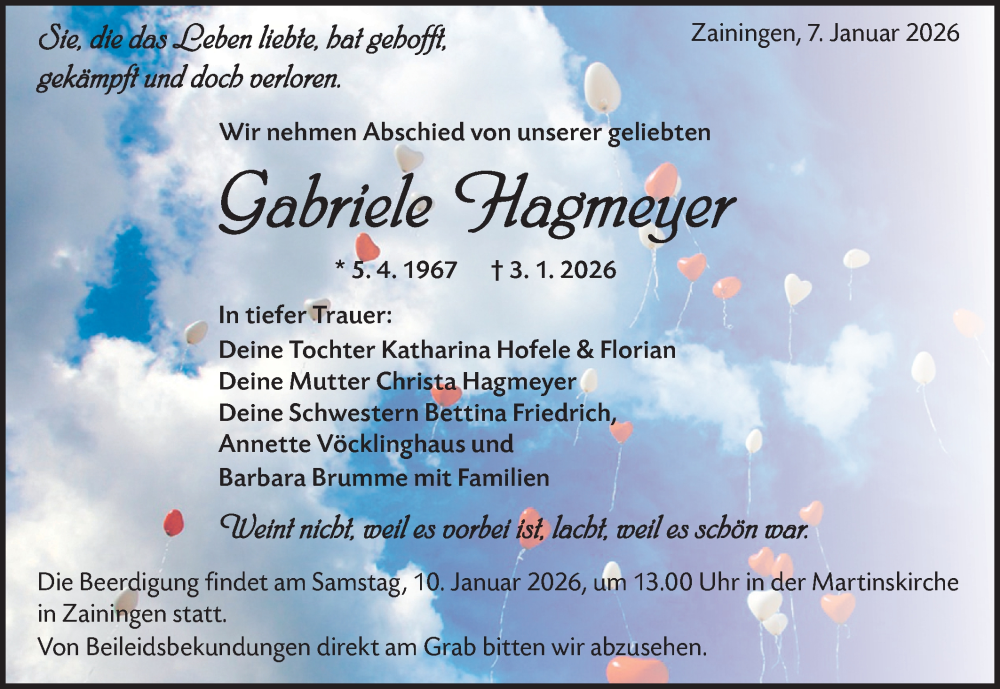 Hier finden Sie alle Traueranzeigen aus der Zeitung, die bisher für Gabriele Hagmeyer erschienen sind. Weitere Traueranzeigen, die in der Zeitung erscheinen, werden hier ebenfalls aufgelistet