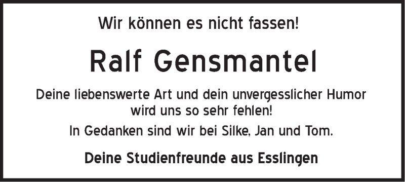 Hier finden Sie alle Traueranzeigen aus der Zeitung, die bisher für Ralf Gensmantel erschienen sind. Weitere Traueranzeigen, die in der Zeitung erscheinen, werden hier ebenfalls aufgelistet