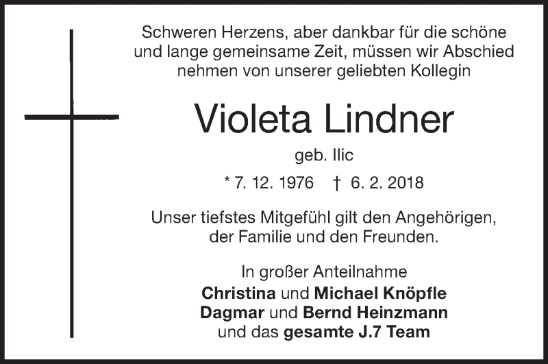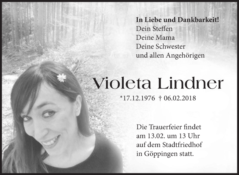 Hier finden Sie alle Traueranzeigen aus der Zeitung, die bisher für Violeta Lindner erschienen sind. Weitere Traueranzeigen, die in der Zeitung erscheinen, werden hier ebenfalls aufgelistet
